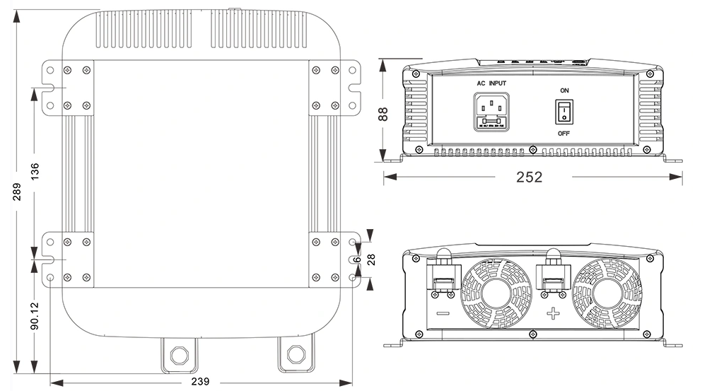 機械図面:(289×252×88mm)
