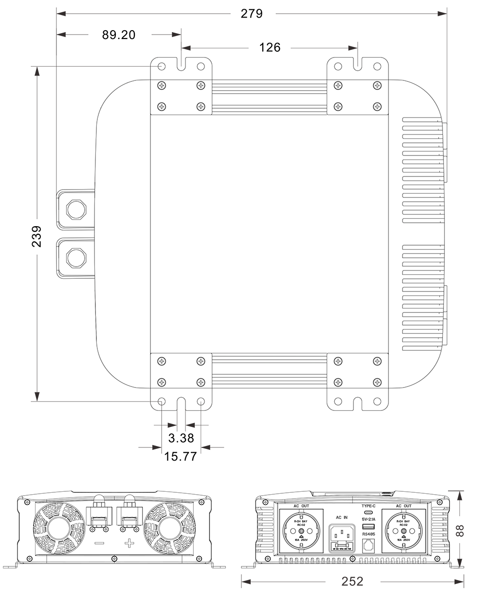 機械図面:(279x252x88mm mm)