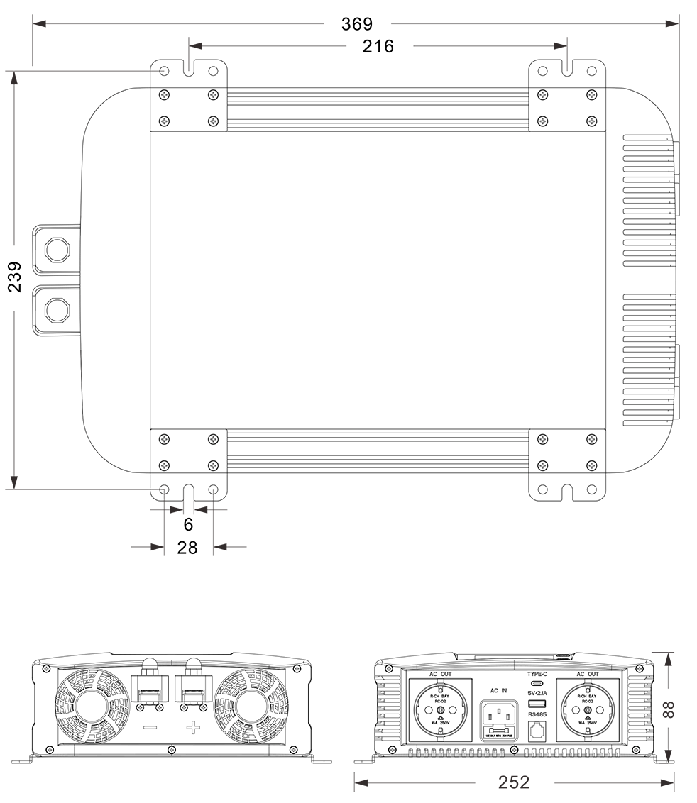 機械図面:(369x252x88mm mm)